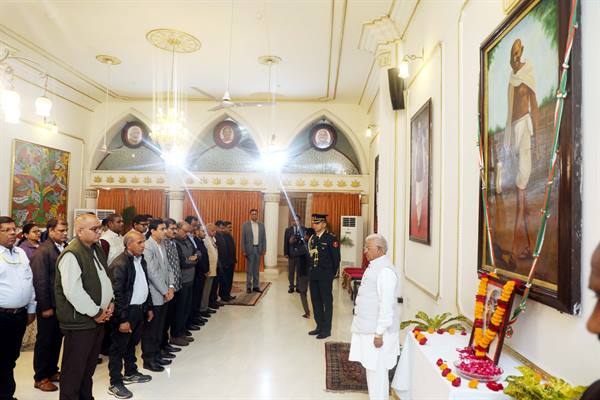 भोपाल।राज्यपाल श्री मंगुभाई पटेल के साथ राष्ट्रपिता महात्मा गांधी की पुण्य-तिथि, शहीद दिवस पर राजभवन के अधिकारी-कर्मचारियों ने 2 मिनट का मौन धारण किया। राष्ट्रपिता महात्मा गांधी के चित्र पर पुष्पांजलि अर्पित की। देश को आज़ादी दिलाने, अपने प्राणों की आहूति देने वाले असंख्य ज्ञात-अज्ञात शहीदों, स्वतंत्रता संग्राम सेनानियों को श्रद्धांजलि दी।